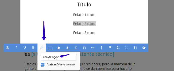 Los hashtags: #nextPage, #nextPage2 y #nextPage3 pueden añadirse como hipervínculos en el texto.