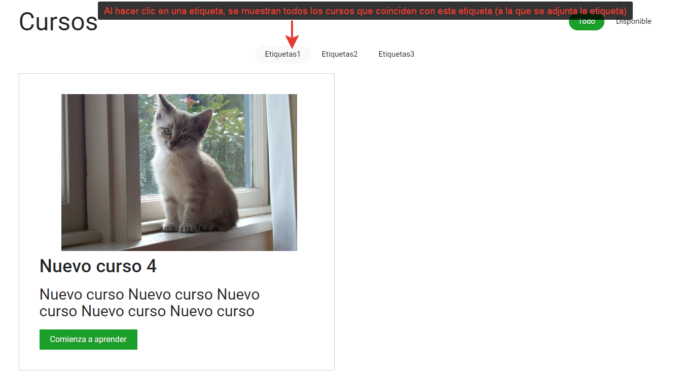 Al hacer clic en una etiqueta, se muestran todos los cursos que coinciden con esta etiqueta (a la que se adjunta la etiqueta).