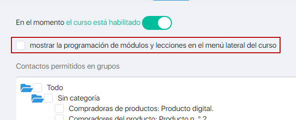 4. Tenemos una opción más en la pestaña «Acceso» a la izquierda: «Mostrar el calendario de módulos y lecciones en el menú lateral del curso».