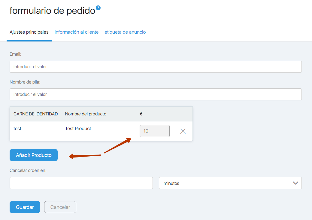 Rellene los datos del cliente y añada un producto. Especifique el importe del recargo requerido.